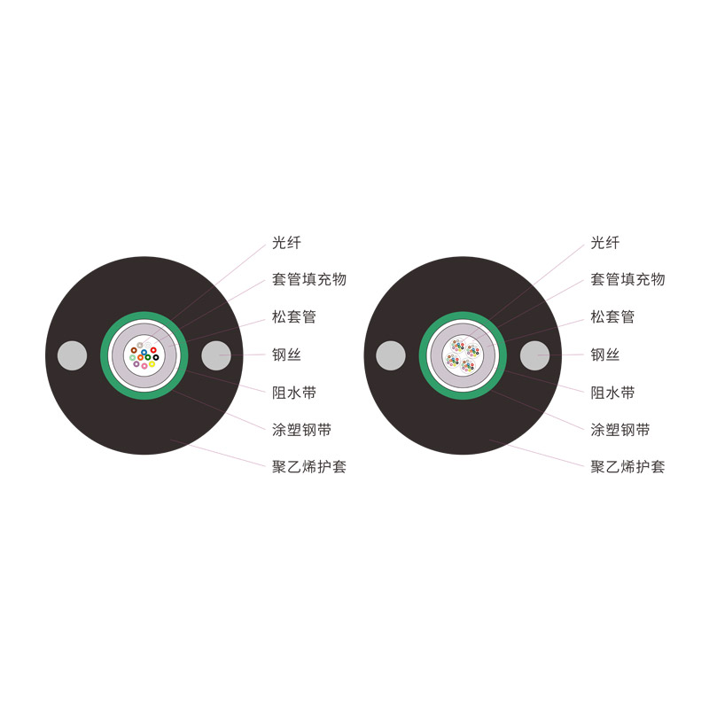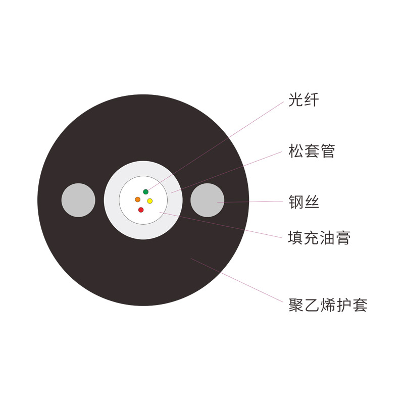 · 产品特点:全截面阻水结构,确保良好的防水防潮性能;两根平行圆钢丝既抗张力又抗侧压;松套管内特种油膏对光纤进行保护,确保光纤传输性长期稳定。