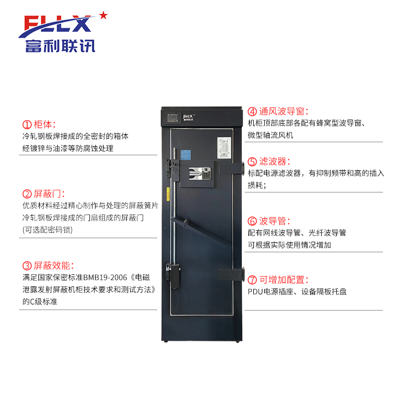 · 满足国家保密标准BMB19-2006《电磁泄露发射屏蔽机柜技术要求和测试方法》的C级标准;